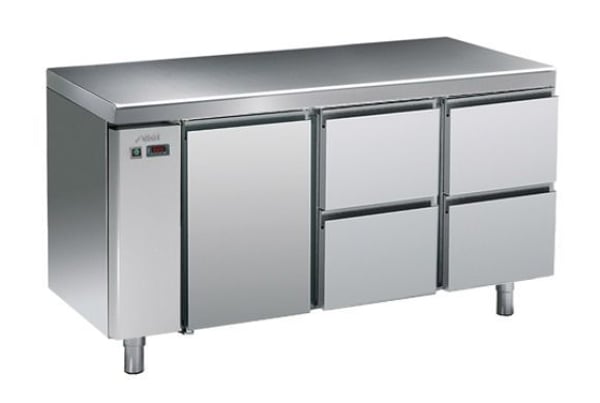 Несущий каркас выполнен из нержавеющей стали AISI 304 . Толщина изоляции 60 мм, она изготовлена из полиуретана без использования CFC. Глубина 70 см - GN 1/1. Рабочий стол высотой 60 мм выполнен из нержавеющей стали AISI 304 с звукопоглощающей разделительной панелью. Предлагаются варианты без рабочего стола, с односторонним рабочим столом, или с односторонним рабочим столом и плинтусом столешницы.