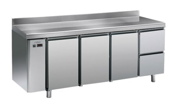 Несущий каркас выполнен из нержавеющей стали AISI 304 . Толщина изоляции 60 мм, она изготовлена из полиуретана без использования CFC. Глубина 70 см - GN 1/1. Рабочий стол высотой 60 мм выполнен из нержавеющей стали AISI 304 с звукопоглощающей разделительной панелью. Предлагаются варианты без рабочего стола, с односторонним рабочим столом, или с односторонним рабочим столом и плинтусом столешницы.