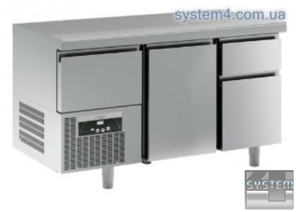 Холодильный ящик GN 1/1 над моторным отсеком позволяет лучше использовать полезный объем. Внутренняя камера имеет штампованное днище и отверстие для промывки и облегчения чистки. Зубчатые рейки из нержавеющей стали AISI 304 легко снимаются. Ножки из нержавеющей стали AISI 304 регулируются по высоте. Панель органов управления, оборудованная электронной платой, выполняющей следующие функции:
