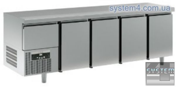 Несущий каркас выполнен из нержавеющей стали AISI 304 . Толщина изоляции 60 мм, она изготовлена из полиуретана без использования CFC. Глубина 70 см - GN 1/1. Рабочий стол высотой 60 мм выполнен из нержавеющей стали AISI 304 с звукопоглощающей разделительной панелью. Предлагаются варианты без рабочего стола, с односторонним рабочим столом, или с односторонним рабочим столом и плинтусом столешницы.