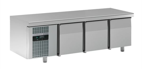 Опорный холодильный стол для модульного варочного оборудования. Несущий каркас выполнен из нержавеющей стали AISI 304 . Толщина изоляции 55 мм, изготовлена из полиуретана без использования CFC. Глубина 70 см - GN 1/1. Поставляется без рабочего стола или с односторонним рабочим столом высотой 60 мм, выполненным из нержавеющей стали AISI 304 со звукопоглощающей разделительной панелью.