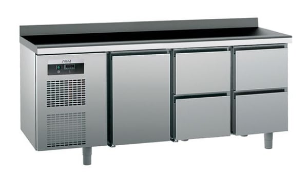 Предлагаются варианты без рабочего стола, с односторонним рабочим столом, или с односторонним рабочим столом и плинтусом столешницы. Внутренняя камера имеет штампованное днище для облегчения чистки. Зубчатые рейки из нержавеющей стали AISI 304 легко снимаются. Ножки из нержавеющей стали AISI 304 регулируются по высоте. Панель управления оборудована цифровым термометром-термостатом. Рабочая температура: от +0 до +10°C. Автоматическая оттайка и система испарения конденсата. В комплектацию входят 1 пара направляющих из нержавеющей стали AISI 304 и 1 решетка на отсек. Комплект замков - по дополнительному заказу.