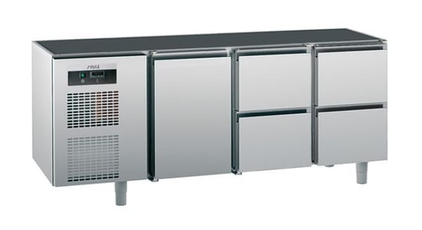 Несущий каркас выполнен из нержавеющей стали AISI 304 . Толщина изоляции 60 мм, которая изготовлена из полиуретана без использования CFC. Глубина 600 мм и 700 мм - GN 1/1. Рабочий стол высотой 840 мм выполнен из нержавеющей стали AISI 304 с звукопоглощающей разделительной панелью. Предлагаются варианты без рабочего стола, с односторонним рабочим столом, или с односторонним рабочим столом и плинтусом столешницы.
