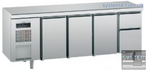 Несущий каркас выполнен из нержавеющей стали AISI 304 . Толщина изоляции 60 мм, она изготовлена из полиуретана без использования CFC. Глубина 60 см и 70 см - GN 1/1. Рабочий стол высотой 60 мм выполнен из нержавеющей стали AISI 304 с звукопоглощающей разделительной панелью. Предлагаются варианты без рабочего стола, с односторонним рабочим столом, или с односторонним рабочим столом и плинтусом столешницы.
