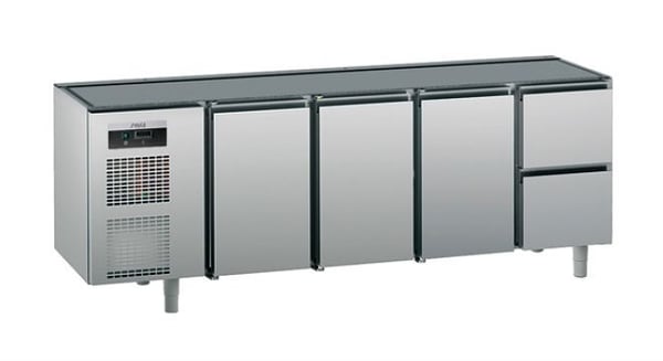Несущий каркас выполнен из нержавеющей стали AISI 304 . Толщина изоляции 60 мм, которая изготовлена из полиуретана без использования CFC. Глубина 600 мм и 700 мм - GN 1/1. Рабочий стол высотой 840 мм выполнен из нержавеющей стали AISI 304 с звукопоглощающей разделительной панелью. Предлагаются варианты без рабочего стола, с односторонним рабочим столом, или с односторонним рабочим столом и плинтусом столешницы.