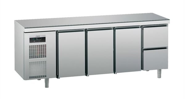 Несущий каркас выполнен из нержавеющей стали AISI 304 . Толщина изоляции 60 мм, которая изготовлена из полиуретана без использования CFC. Глубина 600 мм и 700 мм - GN 1/1. Рабочий стол высотой 900 мм выполнен из нержавеющей стали AISI 304 с звукопоглощающей разделительной панелью. Предлагаются варианты без рабочего стола, с односторонним рабочим столом, или с односторонним рабочим столом и плинтусом столешницы.