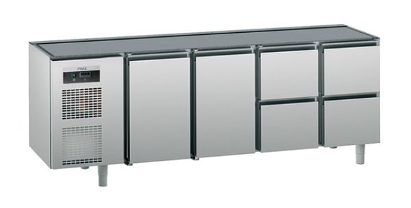 Несущий каркас выполнен из нержавеющей стали AISI 304 . Толщина изоляции 60 мм, которая изготовлена из полиуретана без использования CFC. Глубина 600 мм и 700 мм - GN 1/1. Рабочий стол высотой 840 мм выполнен из нержавеющей стали AISI 304 с звукопоглощающей разделительной панелью. Предлагаются варианты без рабочего стола, с односторонним рабочим столом, или с односторонним рабочим столом и плинтусом столешницы.