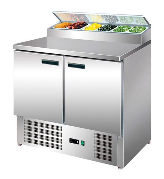 Холодильный стол для салатов с отсеками для гастроемкостей с телескопической крышкой предназначен для приготовления салатов, для охлаждения заготовок для пиццы и может использоваться как для временного хранения и обработки продуктов питания, десертов, так и как отдельный элемент холодильного оборудования.