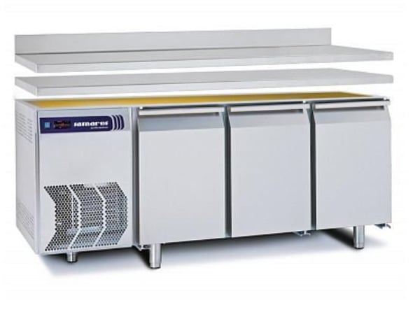 Трехдверный холодильный стол изготовлен из высококачественной нержавеющей стали AISI 304, устойчивой к низким и высоким температурам, к коррозии и с наилучшим коэффициентом гигиеничности, производится в Италии, таким образом, гарантируется высокое качество изделия и каждого его компонента.