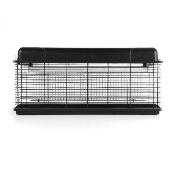 Насекомые погибают при попадании на поверхность от электрического тока, мощностью в 2000 В. Оборудован съемным лотком, подвешивается при помощи цепей.