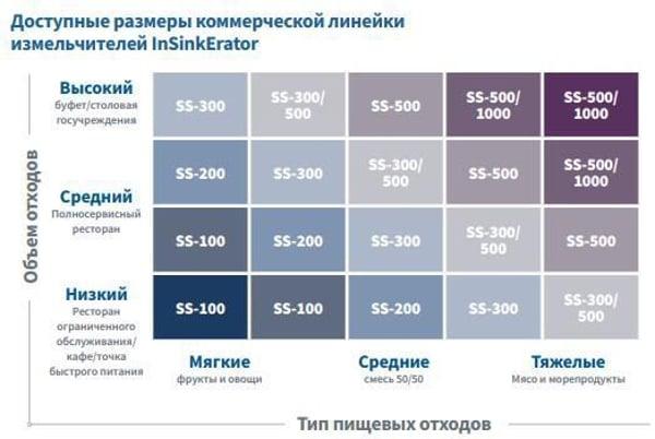 Модель рассчитана на установку в трубопроводах, которые отвечают коммерческим характеристикам, и не подойдет для установки в жилых помещениях. Оборудование рассчитано на использование в заведениях, которые не сталкиваются с большими объемами пищевых отходов: