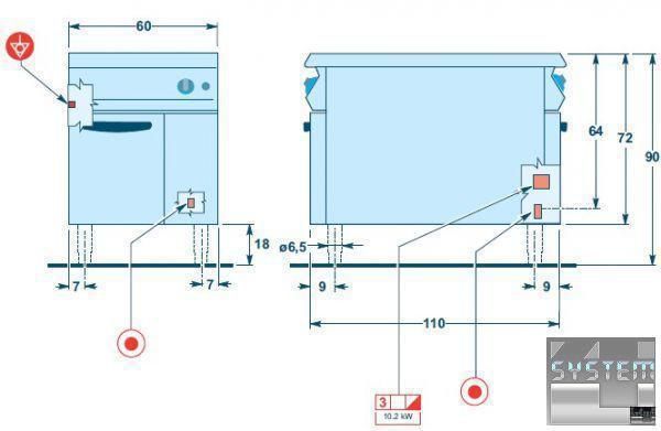 Нагрев происходит благодаря двум группам независимых армированных нагревательных элементов из нержавеющей стали AISI 309 и регулируется термостатом. Общая мощность 10,2 кВт (каждая группа нагревательных элементов нагревает половину поверхности 5,1 кВт + 5,1кВт), контроль термостатом.