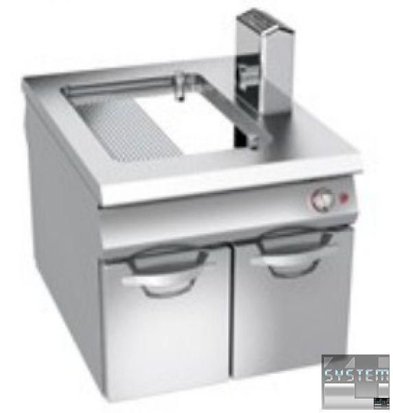 Сквозное нижнее отделение из нержавеющей стали AISI 304, толщиной 10/10 мм с закругленными нижними углами, с двух сторон закрыто стенками, а с двух оборудовано дверями. Подходит для использования 2/1 GN.