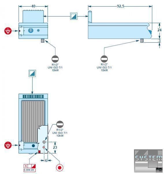 Нагревание посредством группы горелок мощностью 10 кВт, контроль термостатическим клапаном.