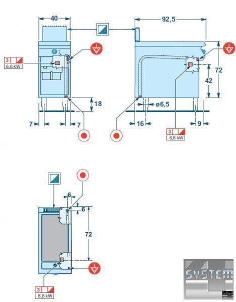 Нижний отсек интегрирован в столешницу, Он отделен от верхней части (жарочной поверхности) изолированной структурой, которая служит для размещения электрооборудования, с фронтальным доступом к органам управления.