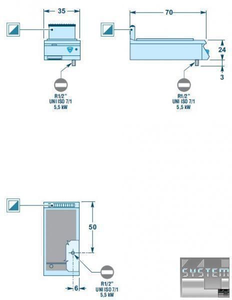 Нагревание посредством группы горелок мощностью 5,5 кВт, контроль термостатическим клапаном.