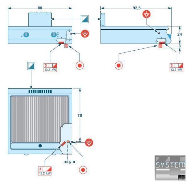 Нагрев происходит благодаря двум группам армированных нагревательных элементов под пластиной из нержавеющей стали AISI 304L и регулируется термостатом. Общая мощность 13,2 кВт (каждая группа нагревательных элементов нагревает половину поверхности 6,6 кВт + 6,6 кВт).