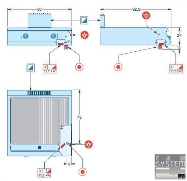 Нагрев происходит благодаря двум группам армированных нагревательных элементов под пластиной из нержавеющей стали AISI 304L и регулируется термостатом. Общая мощность 13,2 кВт (каждая группа нагревательных элементов нагревает половину поверхности 6,6 кВт + 6,6 кВт).