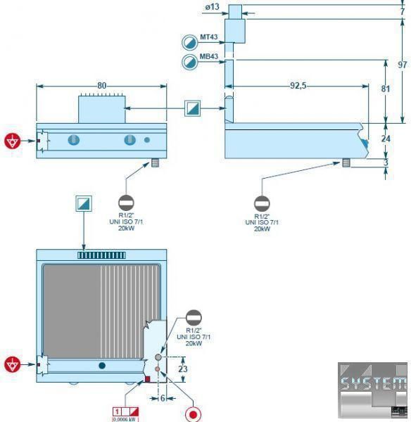 Нагревание посредством двух независимых групп горелок, мощностью 10 кВт каждая, контроль термостатическим клапаном. Каждая группа нагревает половину поверхности.