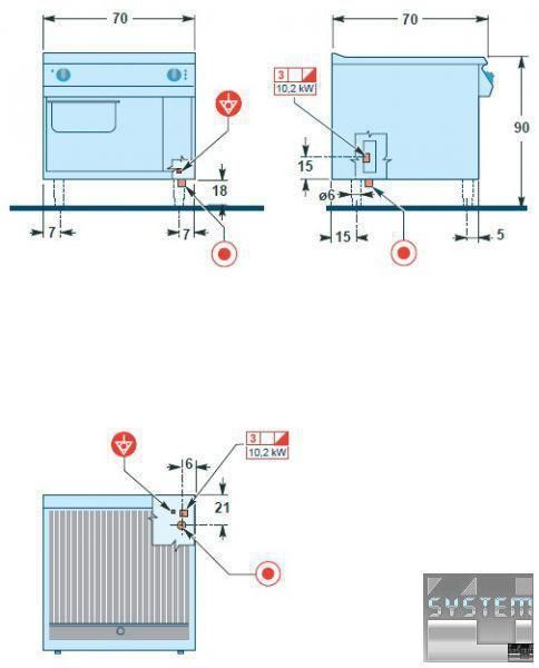 Нижний отсек интегрирован в столешницу. Он отделен от верхней части (жарочной поверхности) изолированной структурой, которая служит для размещения электрооборудования, с фронтальным доступом к органам управления. В нижний отсек встроен поддон для сбора сока и жира из нержавеющей стали AISI 304.