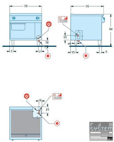 Нижний отсек интегрирован в столешницу. Он отделен от верхней части (жарочной поверхности) изолированной структурой, которая служит для размещения электрооборудования, с фронтальным доступом к органам управления. В нижний отсек встроен поддон для сбора сока и жира из нержавеющей стали AISI 304.
