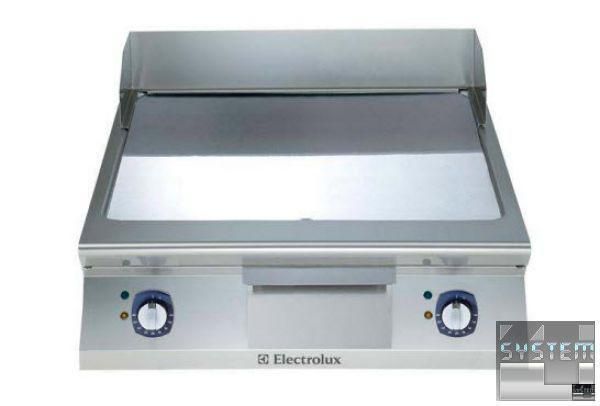 Универсальный жарочный аппарат Electrolux e9ftehhcs00 имеет гладкую жарочную поверхность мощностью 15кВт. Температурный режим работы 120...280°С, из теплопроводящего сплава толщиной 15мм., хромированное покрытие, быстрый нагрев до необходимой температуры, наклонная поверхность, защита от перегрева, отсек для стока жира на 3л, в комплекте с бортом из нерж. стали и скребком для гладкой поверхности. Имеет настольный способ расположения и может монтироваться на поверхность на 4 ножки из нерж. стали толщина металла рабочей поверхности аппарата 2мм. Жарочная поверхность имеет габаритные размеры: 800мм (длина), 930мм (глубина), 250мм (высота) и весит 105кг. Устройство питается от трехфазной сети с напряжением 400В и частотой 50 Гц. Оснащена индикатором работы и контроля напряжения. Рабочая поверхность из нержавеющей пищевой стали AISI 304 с полировкой Scotch Brite.