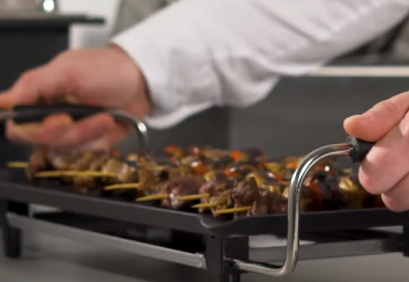 Плита гриль имеет обогреваемую плоскую рабочую поверхность, которая нагревается за счет встроенных и равномерно распределенных, в нижней части оборудования, ТЭНов. Такое расположение электронагревательного элемента способствует однородности температуры по всей поверхности сковородки, благодаря чему происходит правильное приготовление блюд и экономия электроэнергии. Также это позволяет готовить блюда в собственном соке, с красивой и равномерной корочкой.