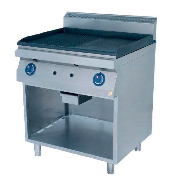 Конструкция позволяет устанавливать оборудование как в островном так и в пристенном варианте. Находящиеся под рабочей поверхностью стальные ТЭНы полностью охватывают ее и обеспечивают равномерное распределение тепла. Имеет качественные внутренние компоненты, прочную конструкцию и современный дизайн.