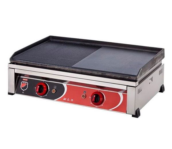 Корпус плиты изготовлен из высококачественной нержавеющей стали. Рабочая поверхность имеет разделенную поверхность на две части - гладкая и рифленая в горизонтальном исполненим и выполнена из чугуна, позволяет готовить блюда в собственном соку с красивой и равномерной корочкой.