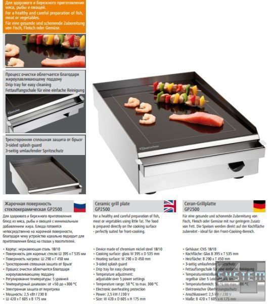 Технические характеристики жарочной поверхности Bartscher GP 2500 370.030: