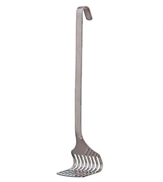 Основание картофелемялки выполнено из высококачественной нержавеющей стали 18/10, имеет изогнутую ручку из нержавеющей стали.