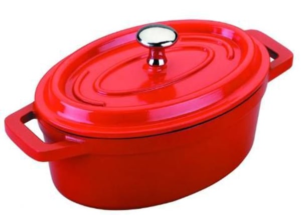 Кастрюля овальная с антипригарным покрытием изготовлена из твёрдого алюминиевого литья и покрыта эмалью,надежная, прочная, легкая посуда, не подвержена деформациям.