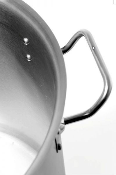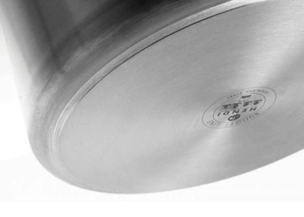 Дно тройное термодиффузионное по типу "сэндвич", имеет сплав сталь-алюминий-сталь, что является благоприятным фактором для лучшей и быстрой теплоотдачи. У кастрюли ненагревающиеся ручки, которые надежно прикреплены заклепками.