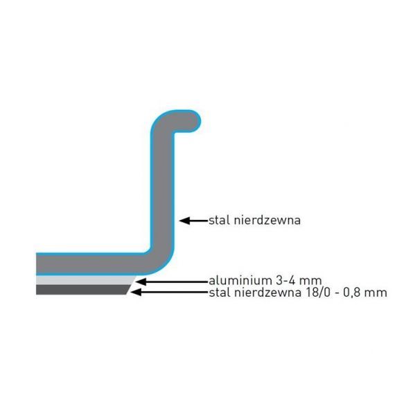 Дно тройное термодиффузионное по типу "сэндвич", имеет сплав сталь-алюминий-сталь, что является благоприятным фактором для лучшей и быстрой теплоотдачи. У кастрюли ненагревающиеся ручки, которые надежно прикреплены заклепками.