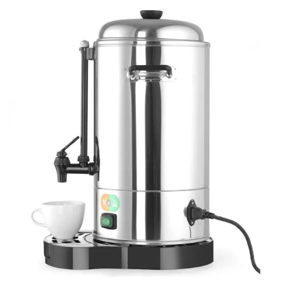 Кипятильник Hendi 211106 – кипятильник, предназначенный для приготовления кипяченой воды с температурой около 100°C, которая в дальнейшем будет использоваться предприятиями общественного питания для приготовления глинтвейна, чая, кофейных напитков и подогрева воды. Благодаря своему уникальному дизайну и акценту на деталях – этот кофеварка будет привлекать внимание на любом мероприятии.