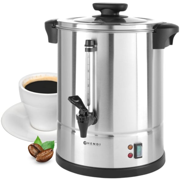 Электрокипятильник Hendi 211328 - кипятильник, предназначенный для приготовления кипяченой воды с температурой около 100 °C, которая будет использоваться предприятиями общественного питания для глинтвейна, чая, кофейных напитков и подогрева воды. Благодаря своему уникальному дизайну и акценту на деталях – этот кофеварка будет привлекать внимание на любом мероприятии. Кипятильник электрический – аппарат периодического действия, требующий повторного заполнения емкости водой. Это расположение Тэна – защищает его от накипи. Внутри встроенная фильтрующая сетка для заваривания кофе грубого помола, изготовленная из нержавеющей стали. Чтобы кофейная гуща не просачивалась в напиток, на фильтрующую сетку рекомендуется установить бумажный фильтр.