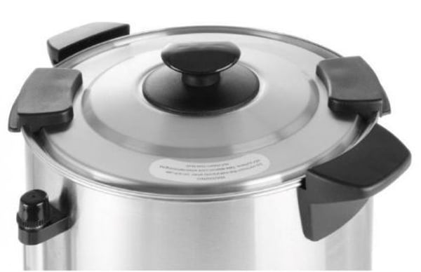 Снаружи кипятильник оснащен мерной шкалой, не капающим краном, сливным поддоном (поддон идет в комплекте) и механической панелью управления.