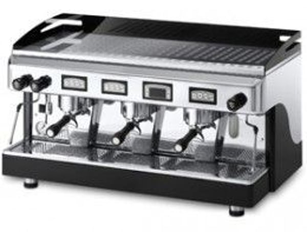 Полуавтоматическая трехрожковая кофемашина с электронным дисплеем. Корпус кофемашины выполнен из нержавеющей и окрашенной стали. Котел и патрубки - медные. Две паровые палочки. Двойной датчик для бойлера и насоса давления. Индикатор освещения включенной машины. Смотровой индикатор количества воды в бойлере, функция автоматического пополнения воды, встроенная моторная помпа? полный контроль дозирования электромеханической пробкой.