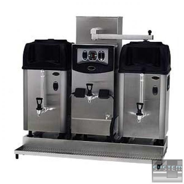 Фильтрационная кофеварка со стационарным подключением к воде. Производительностью 720 чаш/час (150мл/час). Кофе проливается непосредственно в подогреваемый термос объёмом 20 литров. Который можно установить в дальнейшем на кофейную станцию и подключить к электричеству для поддержания требуемой температуры кофе. А также возможно использовать этот термос как накопитель и разбирать кофе термосами, колбами и др. Идеальный вариант для гостиниц, санаториев, пансионатов, где проводятся крупные презентации, конференции, требуется большое количество кофе и чая в короткий промежуток времени.