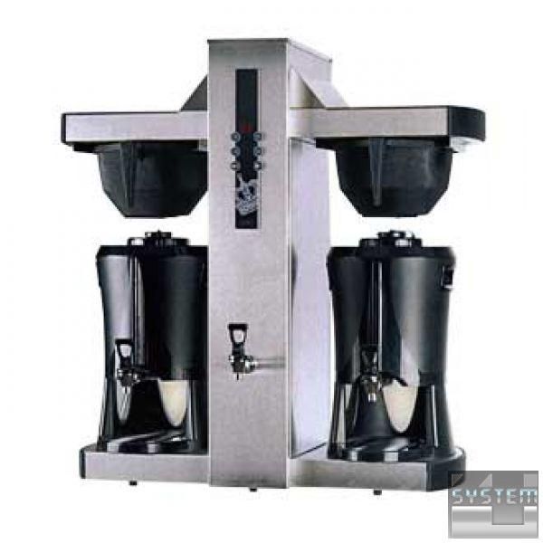 Фильтрационная кофеварка со стационарным подключением к воде. Производительностью 400 чаш/час (150мл/час). Кофе проливается непосредственно в термос объёмом 5 литров, который можно установить в дальнейшем на кофейную станцию. Эти термоса позволяют сохранять кофе при оптимальной температуре в течение нескольких часов. Идеальный вариант для гостиниц, санаториев, пансионатов, где проводятся крупные презентации, конференции, требуется большое количество кофе и чая в короткий промежуток времени.