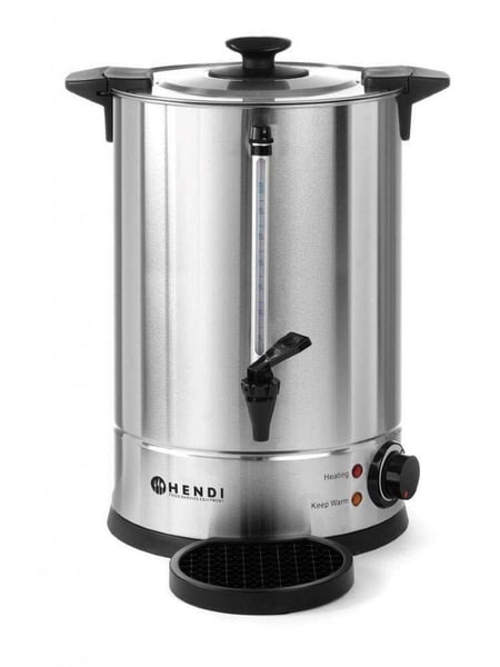 PERCOLATOR DOUBLE WALLED Hendi 211083 - кипятильник предназначен для приготовления кипяченой воды с температурой около 100 °C, которая будет использоваться предприятиями общественного питания для глинтвейна, чая, кофейных напитков и подогрева воды. Благодаря своему уникальному дизайну и акценту на деталях – этот кофеварка будет привлекать внимание на любом мероприятии. Кипятильник электрический – аппарат периодического действия, требующий повторного заполнения емкости водой. Нагрев воды во внутреннем объеме электрокипятильника осуществляется благодаря встроенному в дно ТЭНа. Это расположение Тэна – защищает его от накипи.