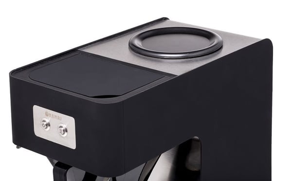 Специально спроектированный корпус кофеварки из полипропилена с резиновым покрытием черного цвета, стеклянный кувшин 1,8 л с крышкой и ручкой из полипропилена.
