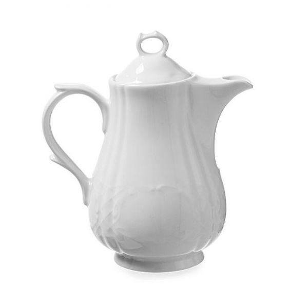 Кофейник, изготовлен из ударопрочного белого фарфора. Усиленные края, глазурь высокого качества. Имеет удобную ручку и крышечку. Можно использовать в микроволновых печах и мыть в посудомоечных машинах.