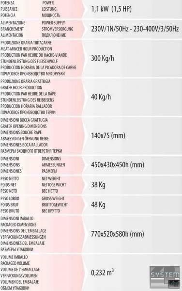 Технические характеристики электромясорубки-терки Fimar 22/AT: