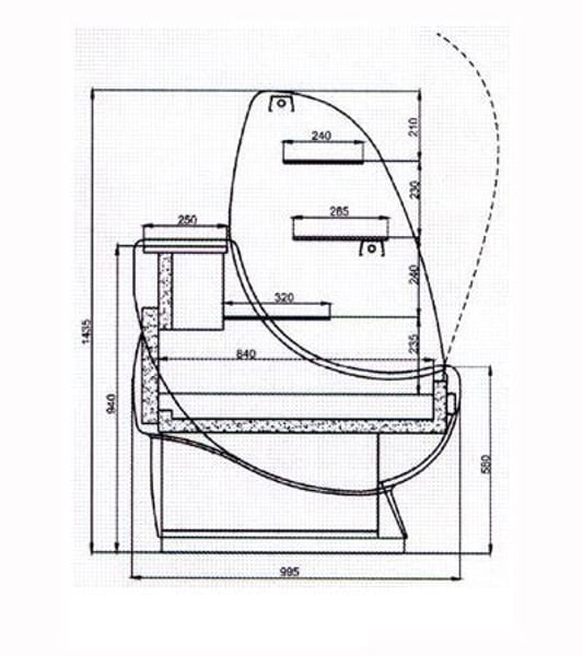 Энергосберегающий холодильный агрегат встроенный. Для удобства есть электронный регулятор температуры с цифровым дисплеем. Витрина снабжена охлаждающей системой, гарантирующей соответствующую температуру для каждой из полок и систему контроля влажности 30-80%. Внутри находится термометр.