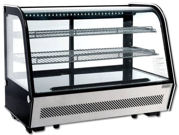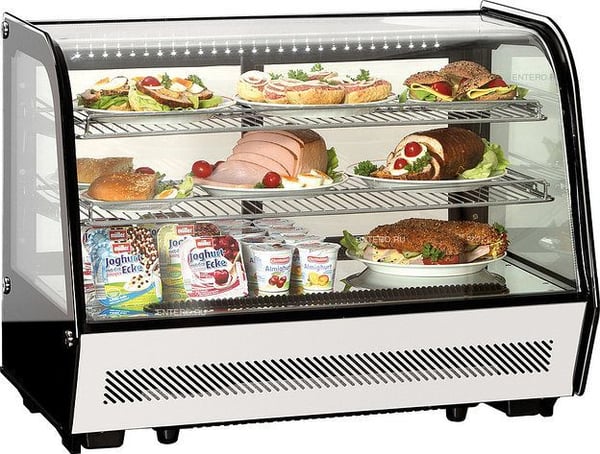 Данная профессиональная настольная витрина оснащена внутри светодиодной подсветкой и стеклопакетами, корпус выполнен из нержавеющкй стали. Имеет две стеклянные навесные полки, динамическое охлаждение, автоматический термостат.