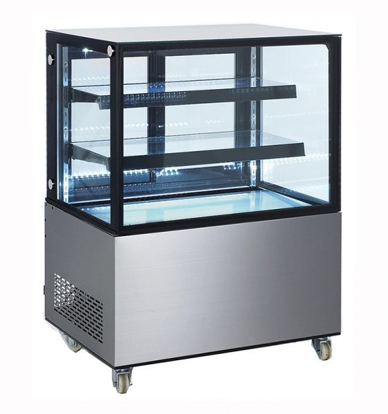 Профессиональная кондитерская витрина имеет 2 стеклянных устойчивых полки, которые регулируются по высоте и могут с легкостью извлекаться для облегчения очистки.