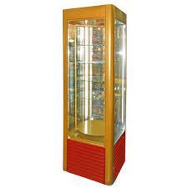 Кондитерская витрина бизнес класса RS-0.4 Veneto созданная с учетом современных тенденций развития холодильного оборудования. Витрина украсит интерьер торговой точки любого формата: ресторана, кафе, бара, фойе отеля, магазина, кондитерской или супермаркета. Идеально подходит для демонстрации и реализации: тортов, выпечки, кремовых пирожных и печенья, шоколадных изделий, пиццы, свежих салатов и цветов. Стильный дизайн, в сочетании с техническим совершенством. Принудительная вентиляция охлажденного воздуха обеспечивает равномерное распределение температуры внутри витрины. Экспозиционная поверхность состоит из 6 прочных стеклянных полок и 1 металлической, которые вращаются по оси и обеспечивают великолепный обзор представленной продукции. Динамические полки привлекают больше внимания посетителей, чем обычные, особенно дополненные яркой светодиодной подсветкой со всех 4-х сторон витрины. Витрина позволяет экономить торговые площади, занимая квадрат 60 х 60 см, при большой площади выкладки.