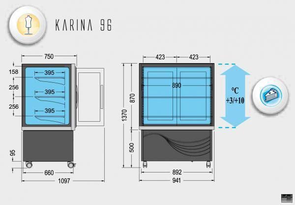 Технические характеристики кондитерской витрины Tecfrigo KARINA 96: