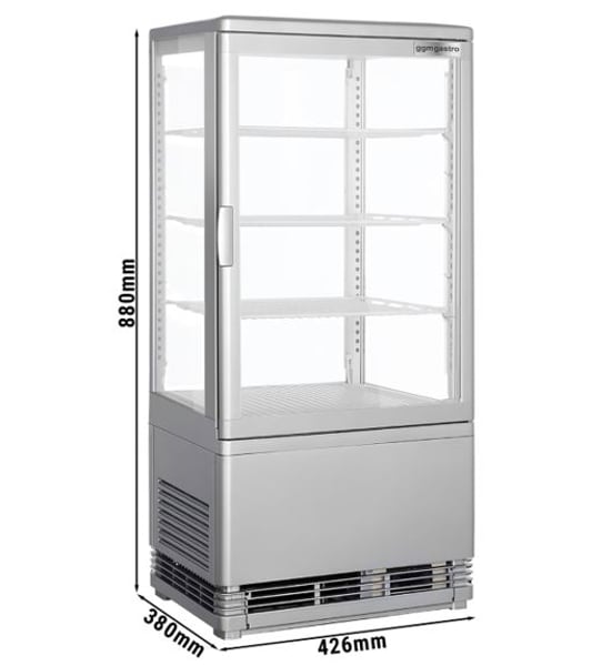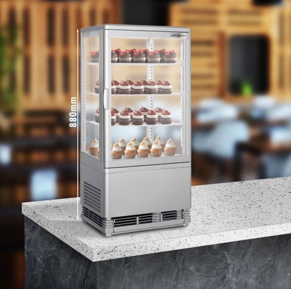Кондитерская витрина предназначена для экспонирования и кратковременного хранения кондитерских изделий (тортов, пирожных, маффинов, шоколада и многих других сладких изделий, которые должны находиться в охлажденном месте) в ресторанах, кафе, барах и других заведениях. Этот аппарат будет сохранять свежесть изделий и их внешний вид. Кондитерская витрина GGM PVNR72E – это элегантный, компактный, настольный холодильник, который удобно разместить на барной стойке в кафе, кафе, на прилавке в небольшом магазине, киоске и АЗС.